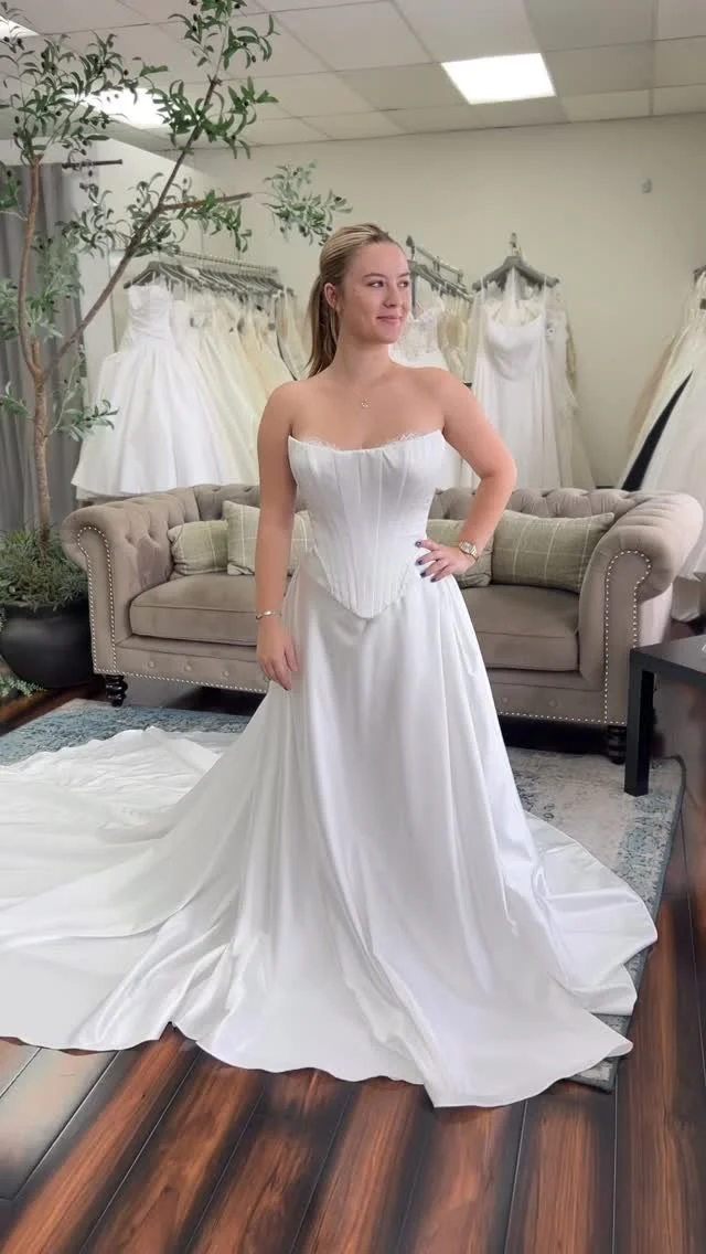 Our newest dresses are thoughtfully chosen to offer a mix of effortless beauty, updated silhouettes, and feel-good pricing. Whether you're just starting your search or circling back for a second look, you'll find gowns here that feel stylish, intentional, and ready to celebrate alongside you.