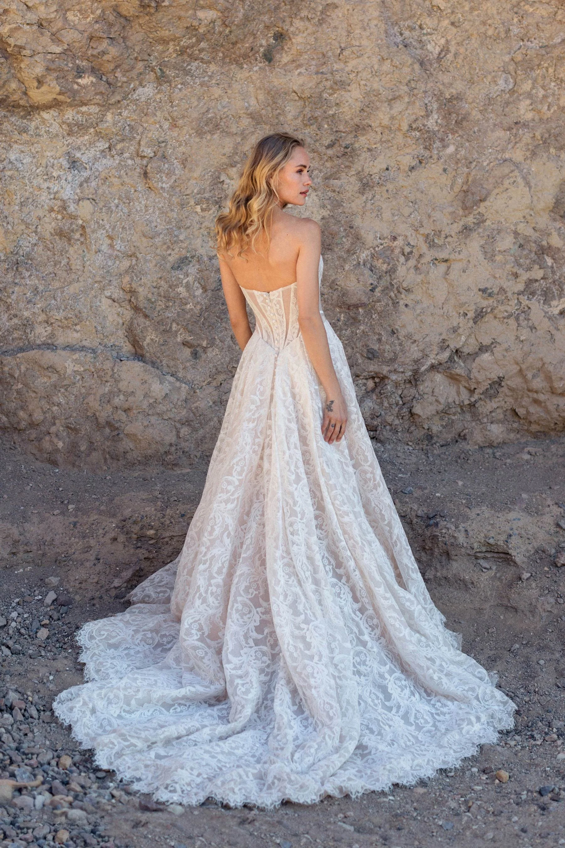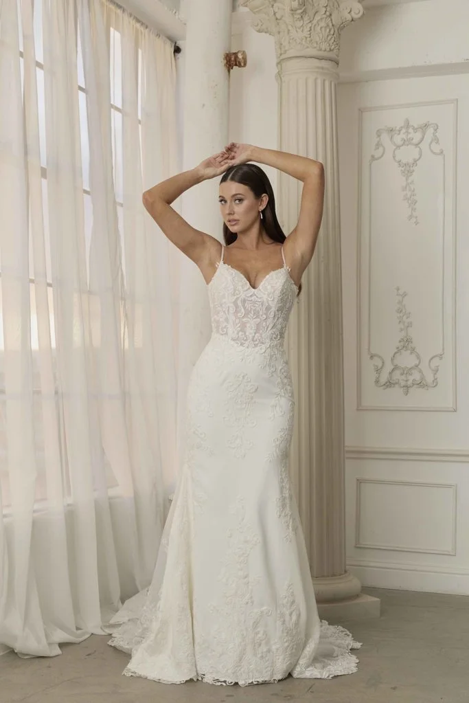 This perfectly curated collection of on-trend Wedding Dresses are available in store as samples to be tried on, and are ordered brand new just for you!