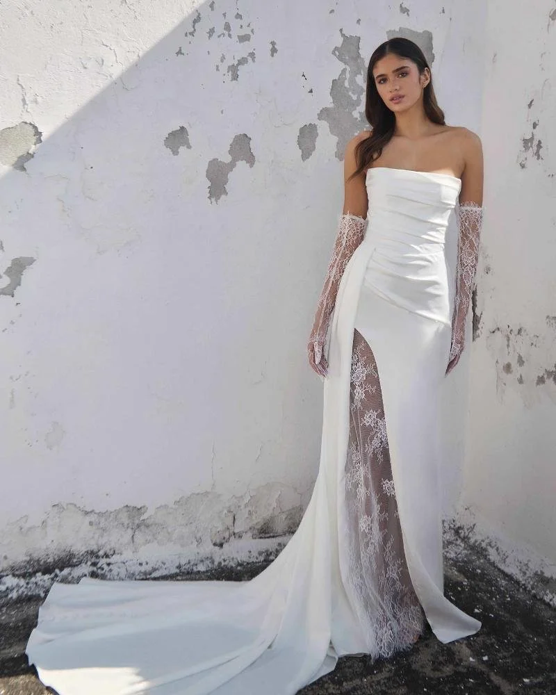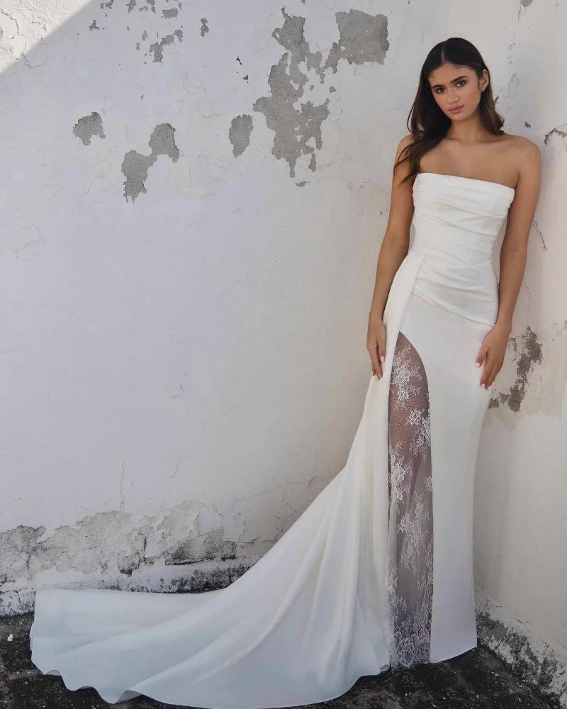 This perfectly curated collection of on-trend Wedding Dresses are available in store as samples to be tried on, and are ordered brand new just for you!